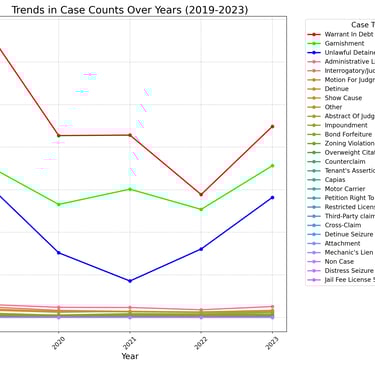 Virginia General District Court - court filings by Type from 2019 - 2023